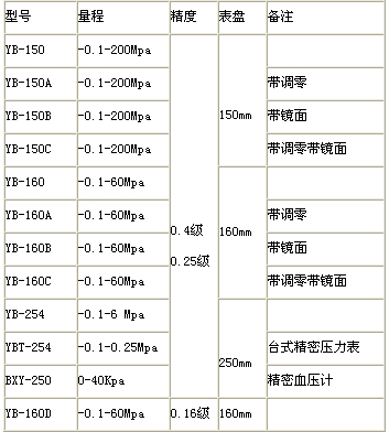 精密壓力表型號(hào)與規(guī)格: