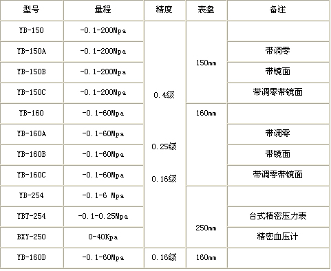 精密壓力表型號(hào)與規(guī)格